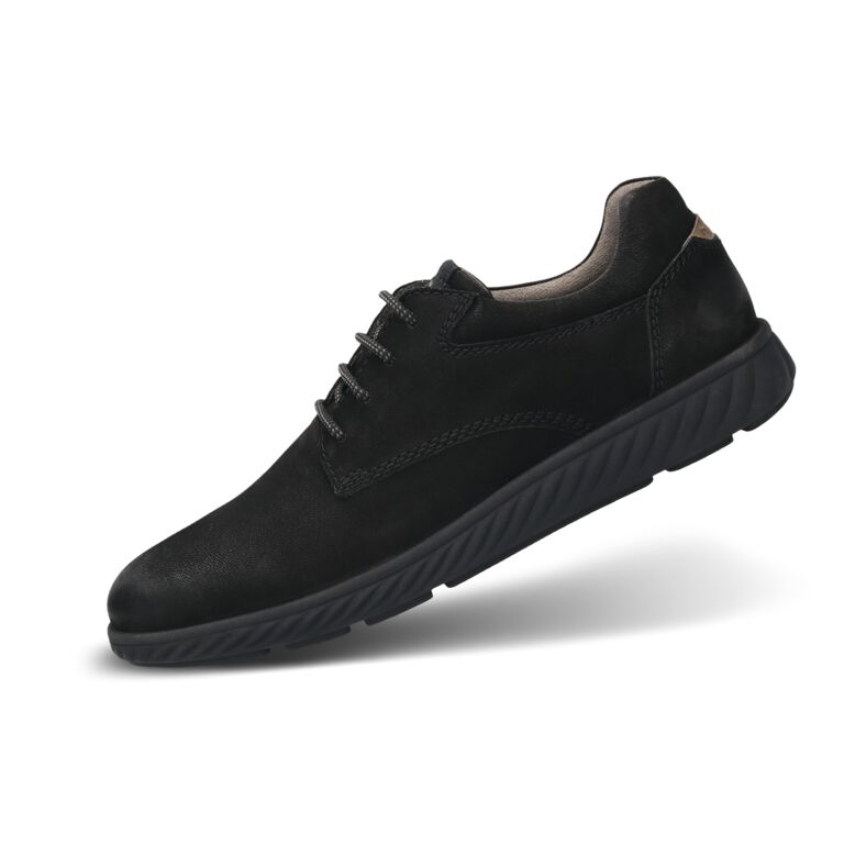 Bugattis snygga snörsko i matt svart. Passar bra både till vardags och fest. Den mjuka sulan gör att man orkar gå.