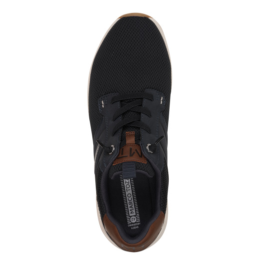 Marco Tozzis lediga och bekväma sneakers. Snörena på skon är av gummiband och behöver inte knytas. Mjuka innersulor ger komfort och det finns bra dämpning under hälen. Yttersulorna är gjorda av TR-gummi med grepp. I storleken är modellen normal.