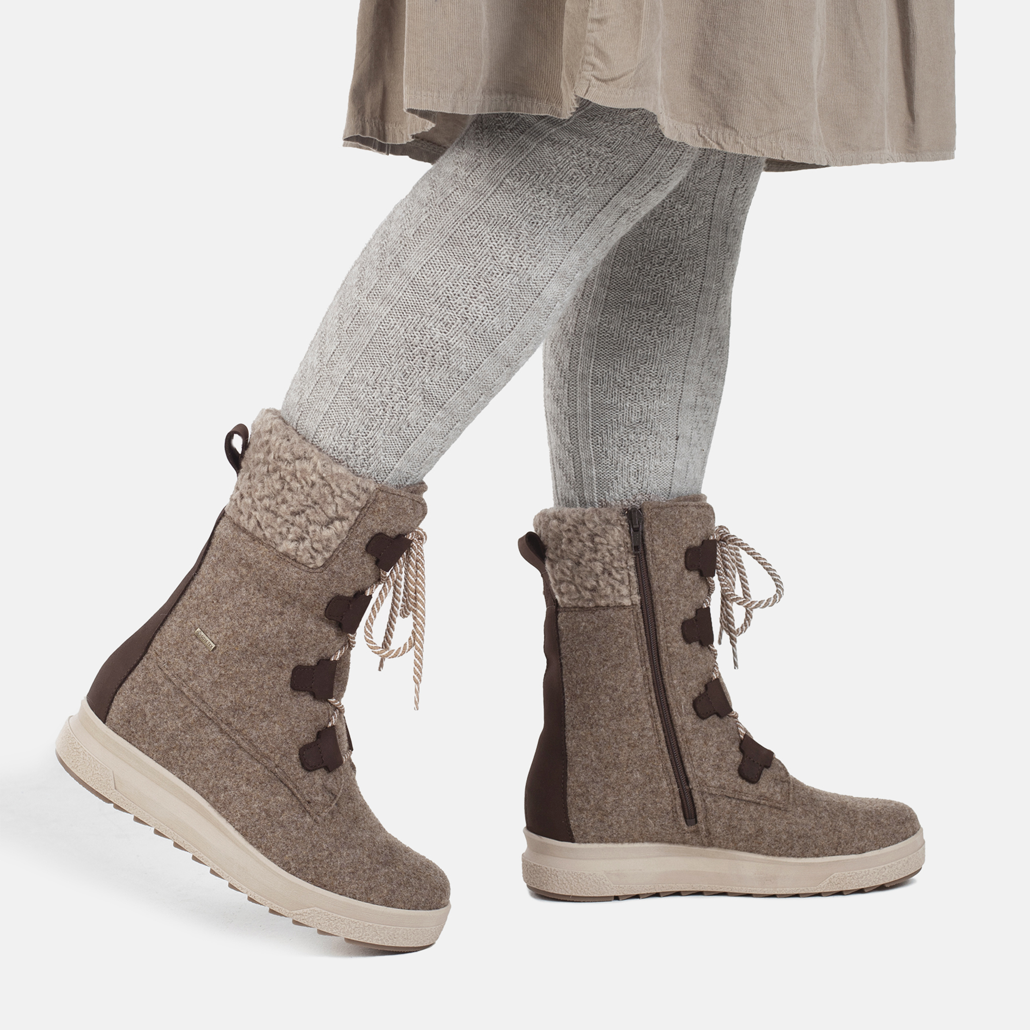 Pomar Reki filtstövlar med rymlig H-läst. Riktigt varma på vintern och sockorna hålls torra även i våtare väder, eftersom stöveln har Gore-tex membran.