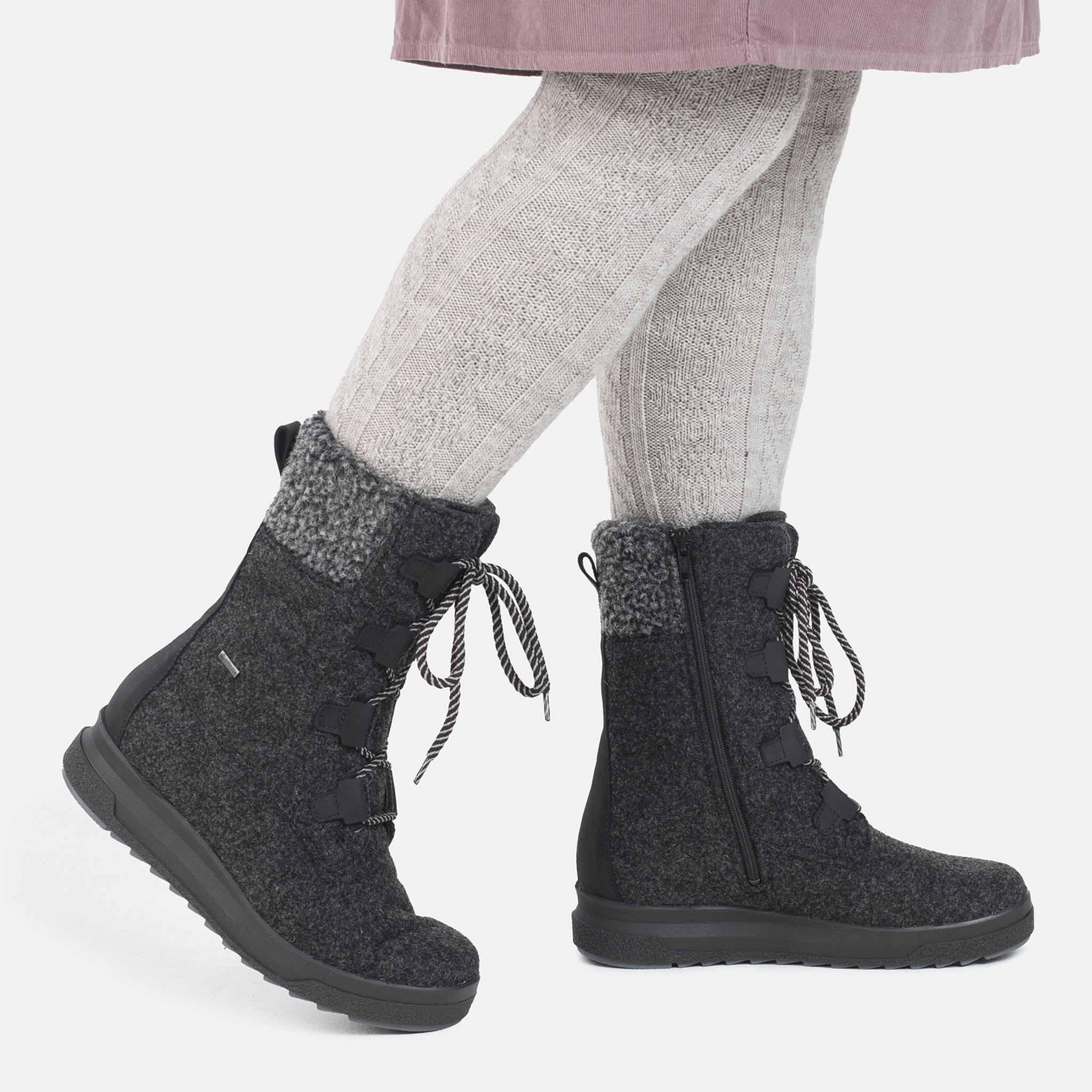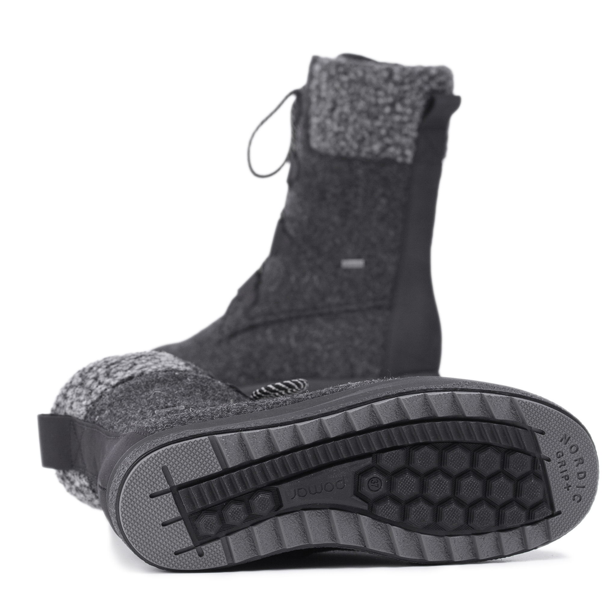 Pomar Reki filtstövlar med rymlig H-läst. Riktigt varma på vintern och sockorna hålls torra även i våtare väder, eftersom stöveln har Gore-tex membran.