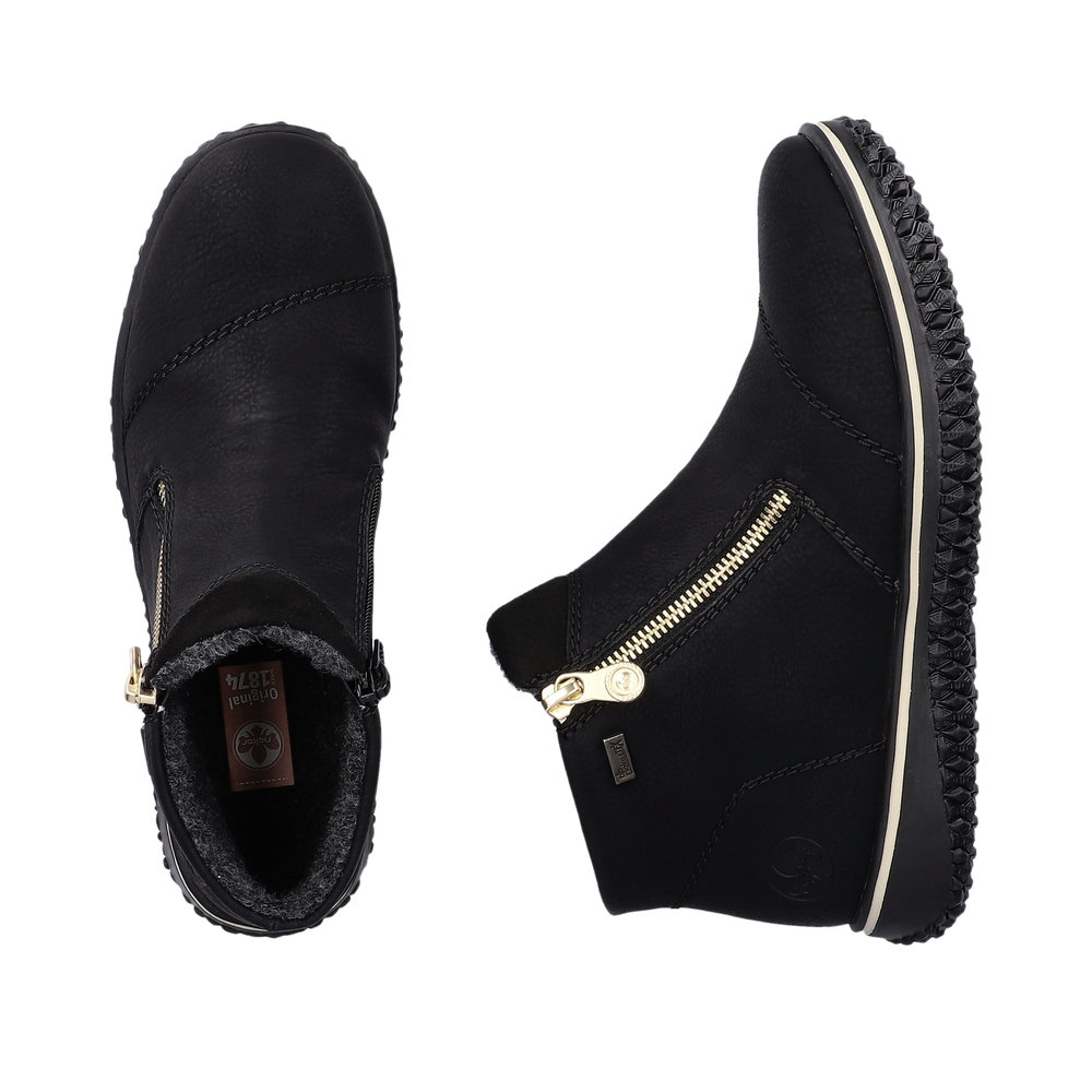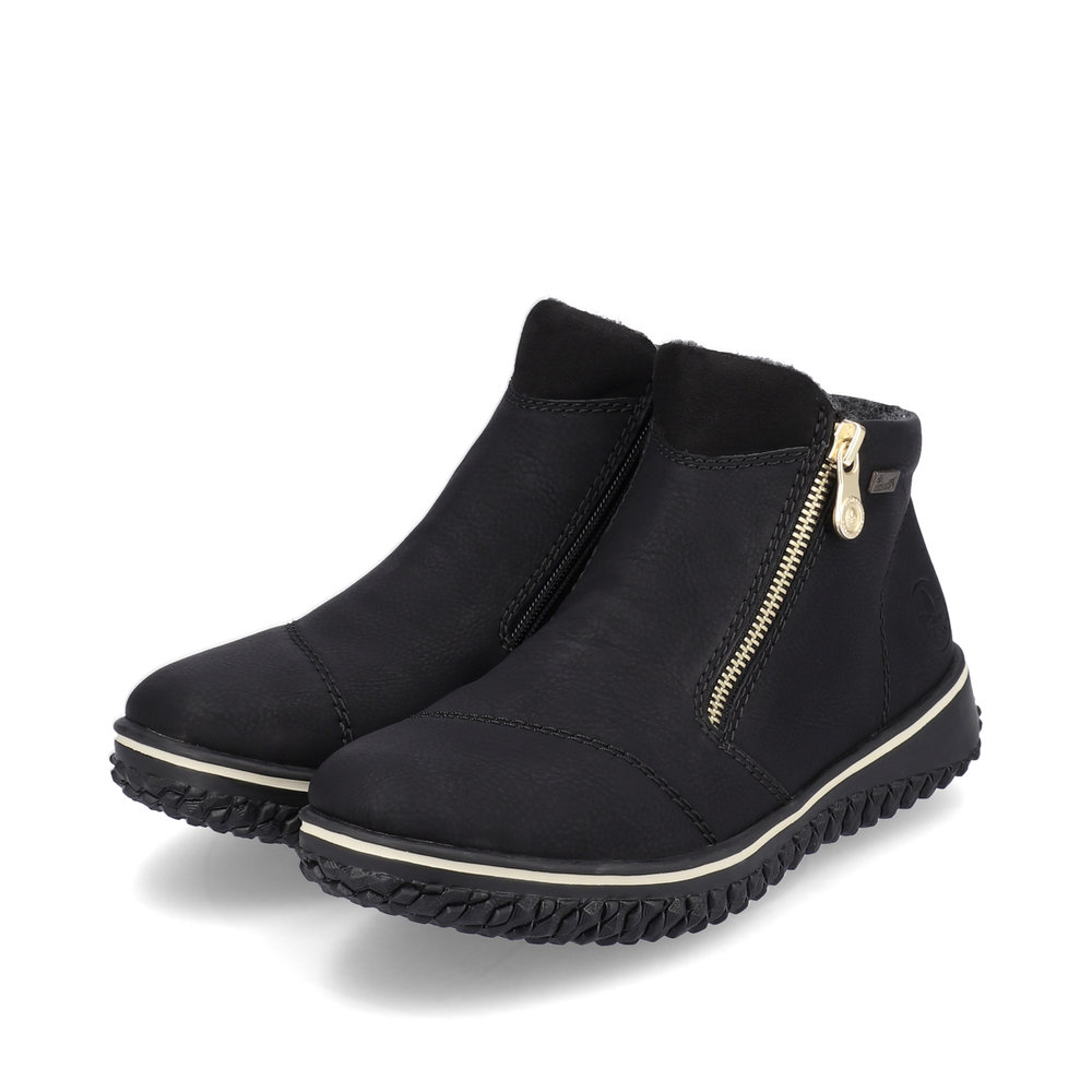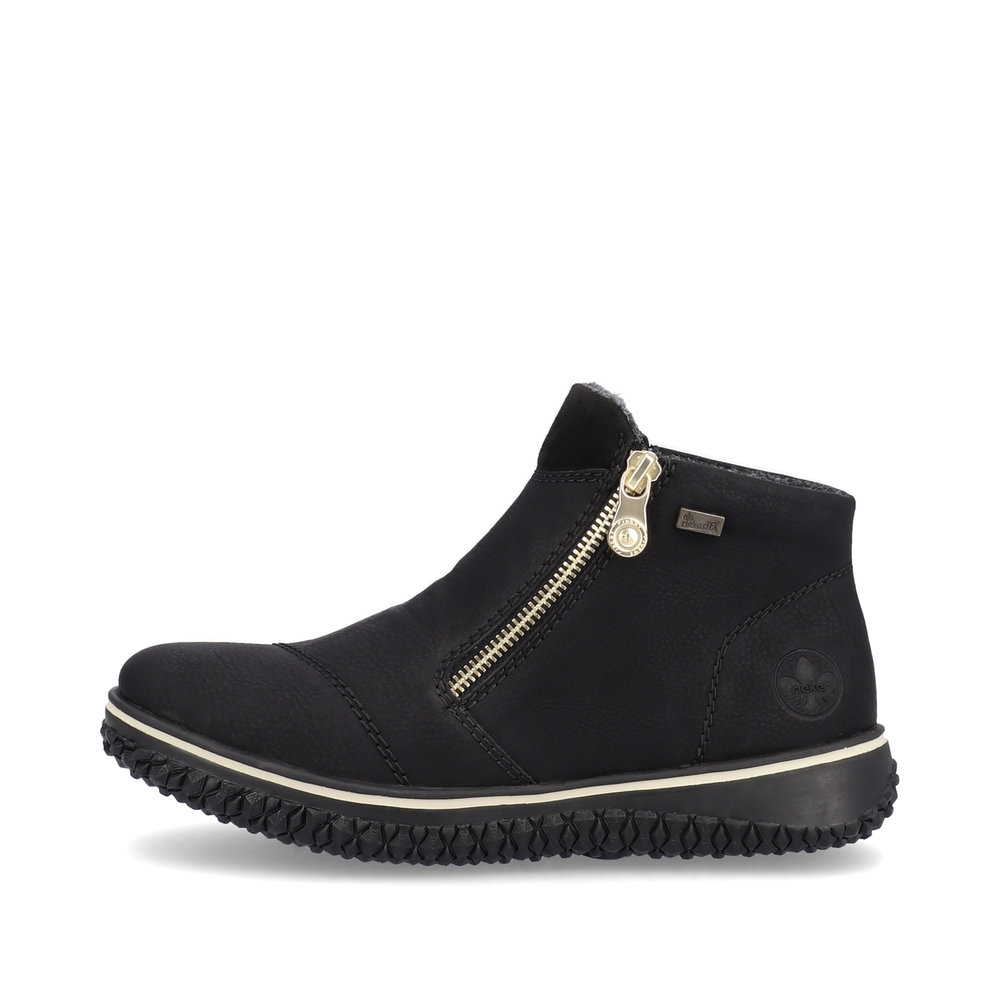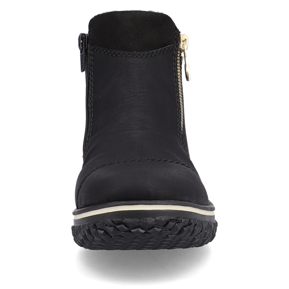 Riekers snygga ankelboots med varmt fleecefoder. Dragkedjorna på sidan av skorna gör det lättare att klä på foten.