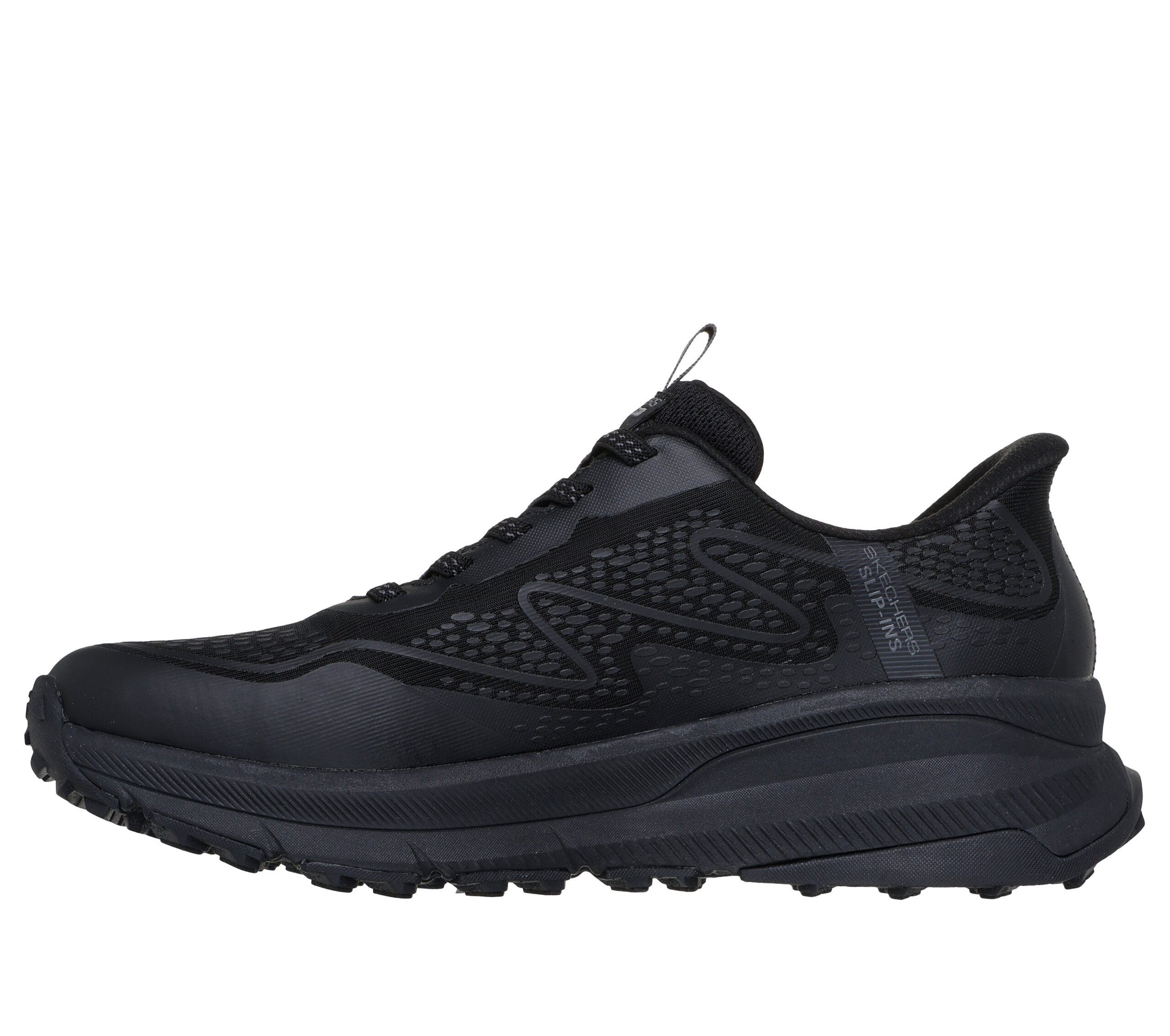Skechers Slip-Ins Waterproof herrskor kombinerar robust konstruktion med modern design. Den svarta färgen gör skorna lätta att kombinera med både fritids- och vardagskläder – perfekta för jobb, stadspromenader och helgens äventyr.