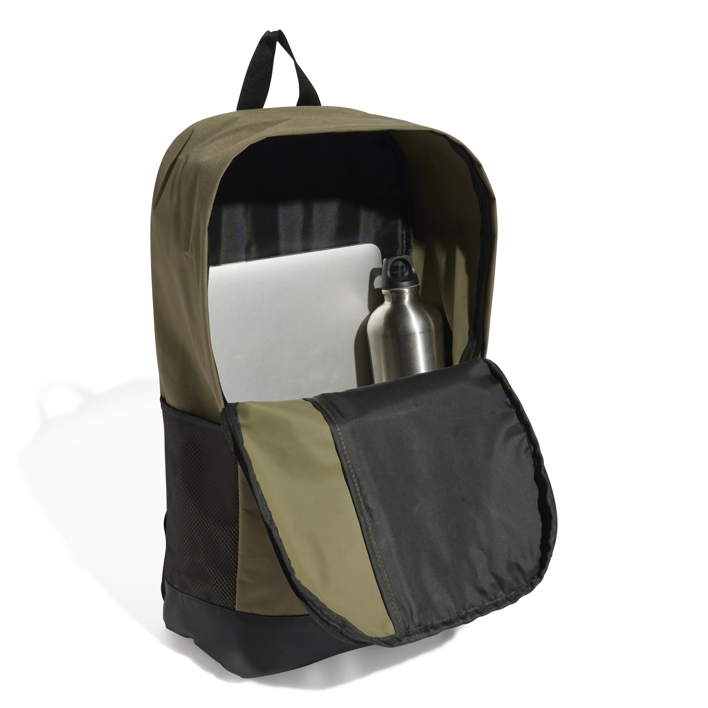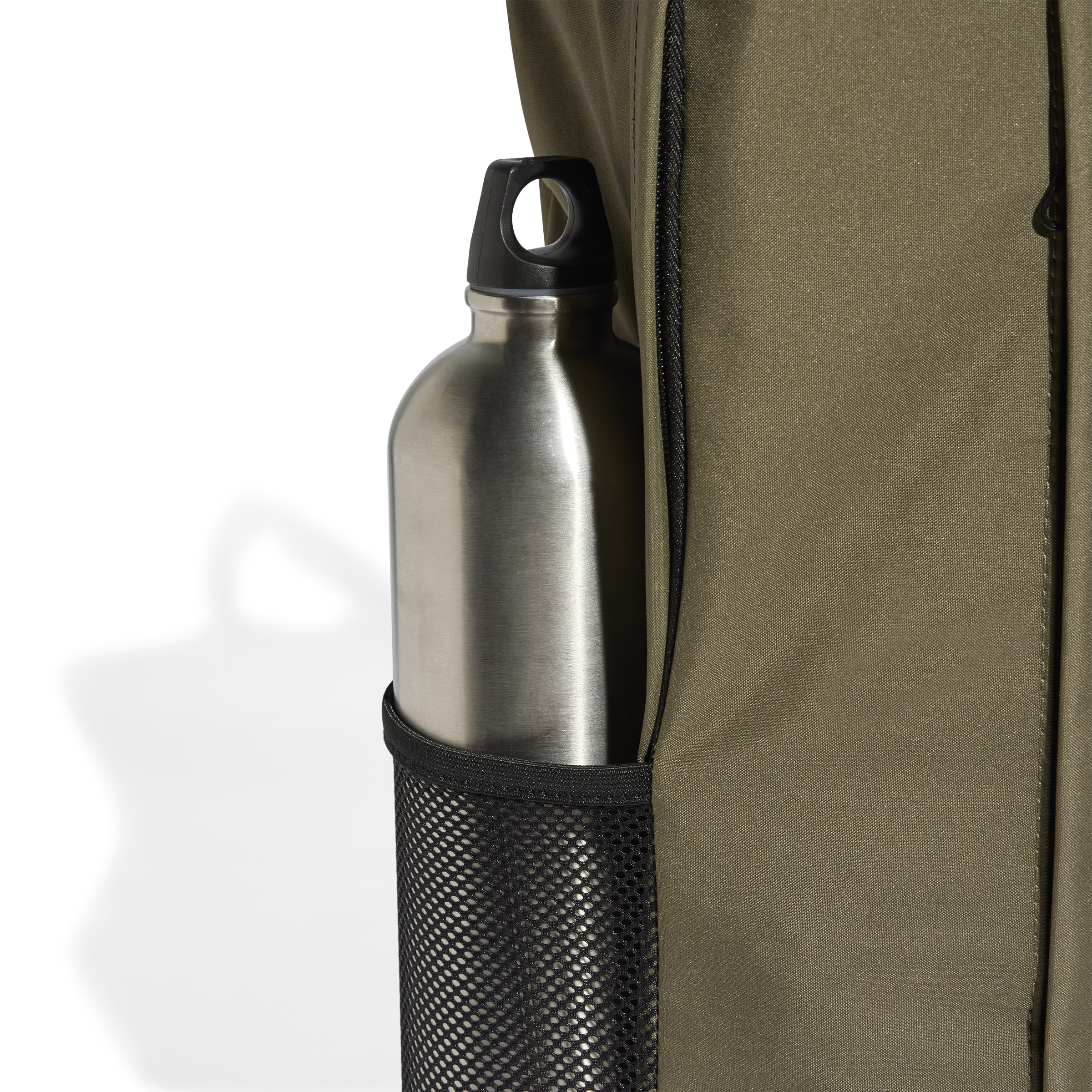 piilotettu vetoketjutasku pienempiä esineitä varten ja kaksi verkkoverkkotaskua vesipulloille.