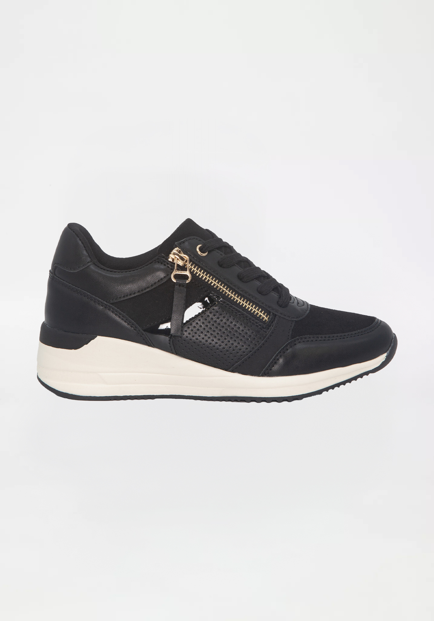 puettava malli, sillä kengän sivusta löytyy vetoketju. Kiilakoroko on noin 5 cm.