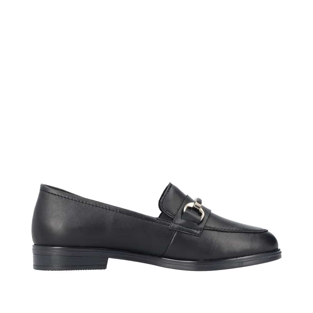 Rieker-loaferit naisille. Nämä loaferit ovat klassisen mustat ja niissä on hienot yksityiskohdat,
