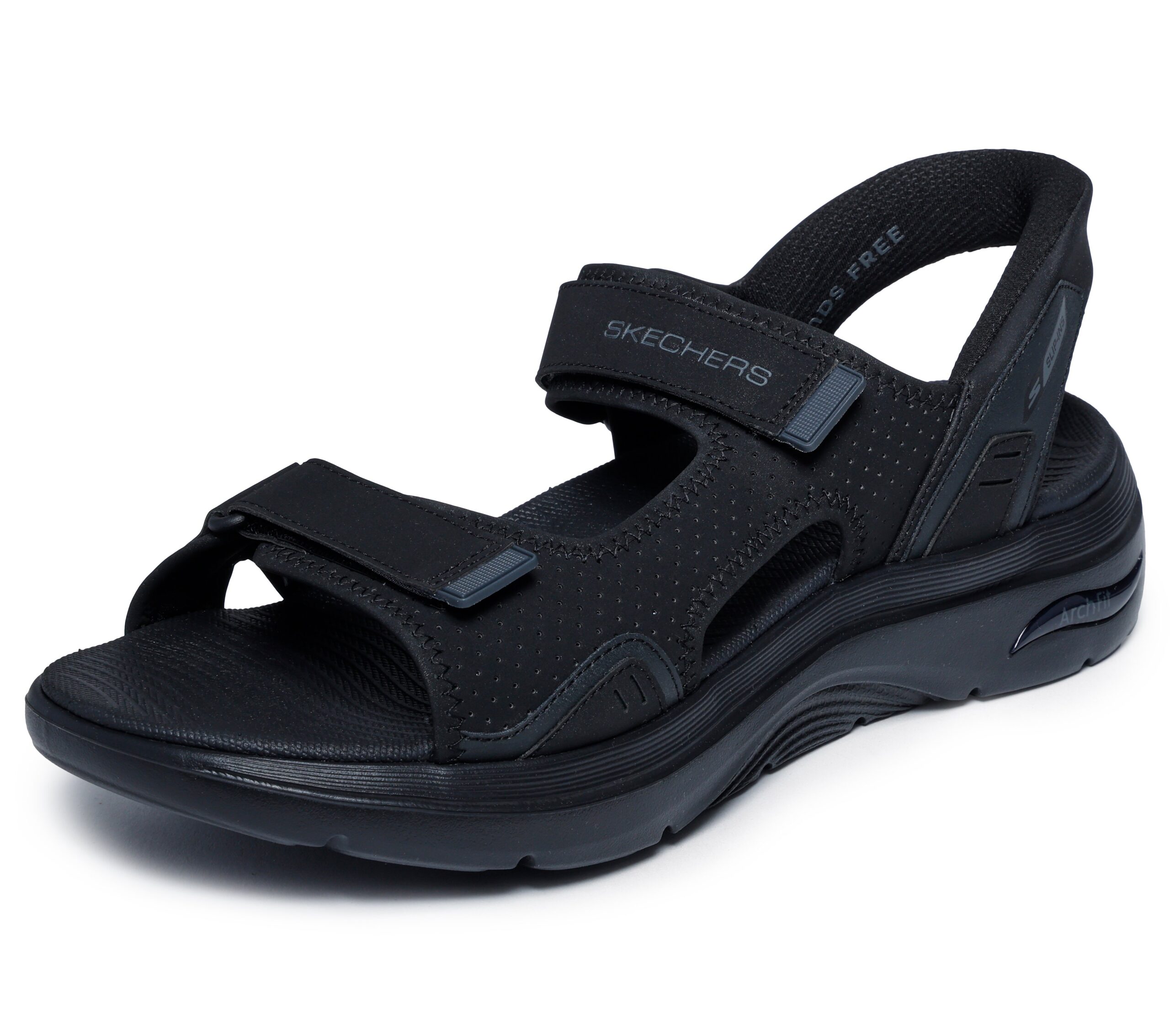 Tekstiilipäällinen hengittää hyvin ja säädettävä jalkapöytähihna takaa hyvän istuvuuden. Muotoiltu Goga Mat -pohjallinen (iskunvaimennus ja tuki) yhdistettynä kevyeseen ULTRA GO -pehmustukseen tekee sandaaleista mukavat koko päivän kestäviin askareisiin.